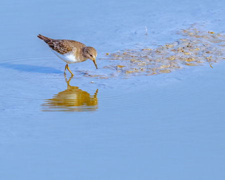Sandpiper, Wood sandpiper in Shallow Water (Tringa glareola) Wader Bird Sandpiper