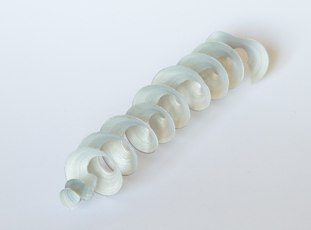 Close-up view of a sea shell on a white background.