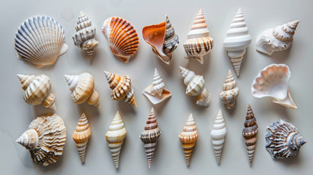 AI Generated. Beige Seashells Displayed Artfully with Distinctive Features