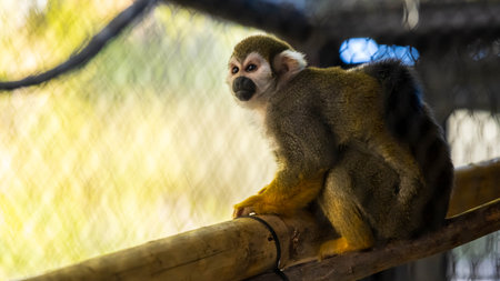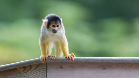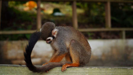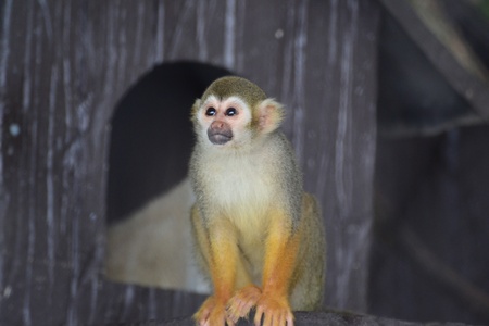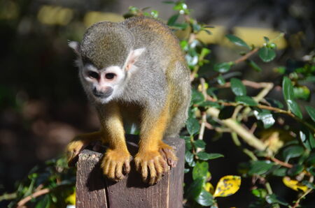 Squirrel Monkey perched on a wooden structure, colombia. High quality photo