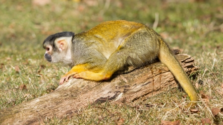 Squirrel monkey, (genus Saimiri) Eating habits on the timber