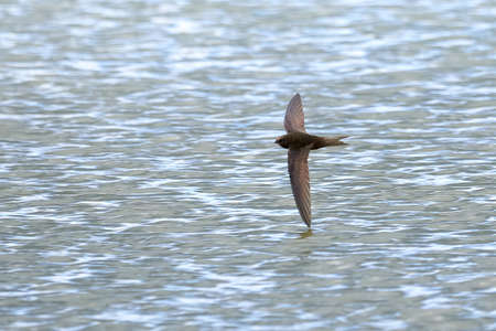 Common swift bird in flight above the water (Apus apus)