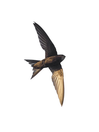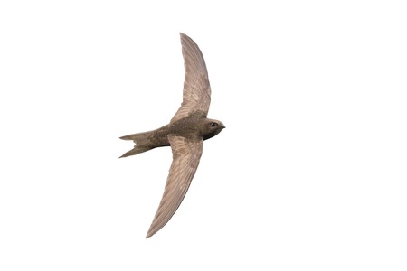 Common swift bird in flight isolated on white background (Apus apus)