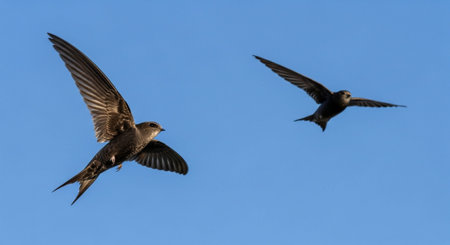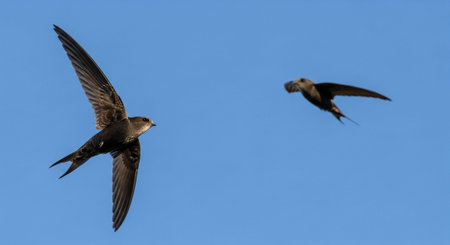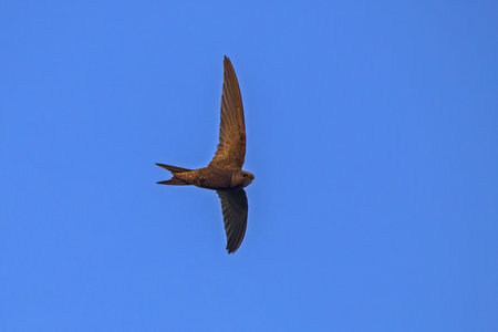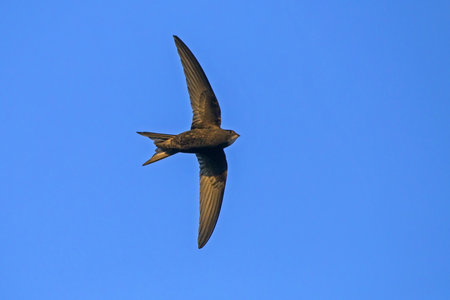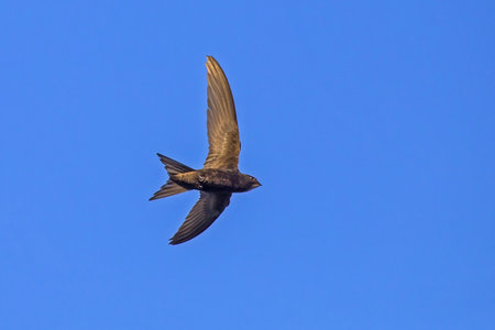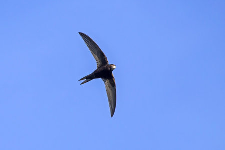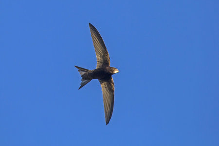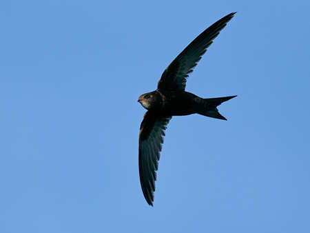 Common Swift (apus apus) flying over clear blue sky background