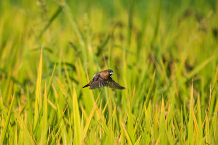Bird flying on rice field in the countryside. Bird flying on rice field.