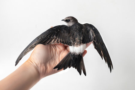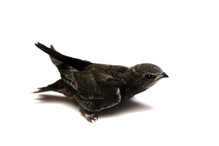 Juvenile common swift bird on the white background. Wildlife conservation. Apus apus bird.
