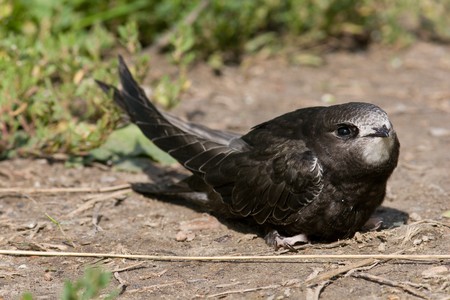 young swift (Apus apus) perched on a rock