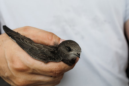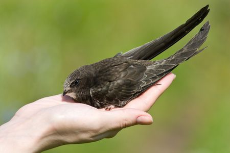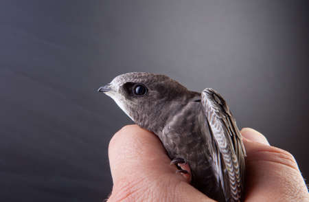 Portrait of an Young Eurasian Swift sitting on hands before taking flight