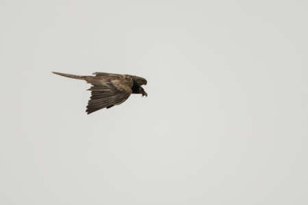 Black swift flying on the blue sky. Common Swift (Apus apus) is the fastest insectivorous bird.