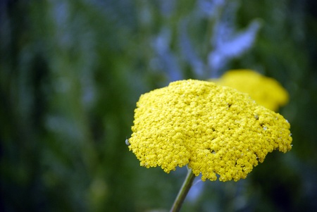 Flower of Fernleaf yarrow or Achillea filipendulina macro, selective focus, shallow DOF.