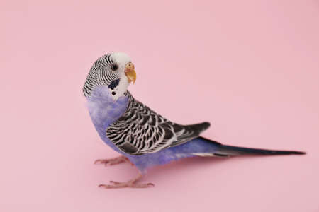 Beautiful parrot on pink background. exotic pet