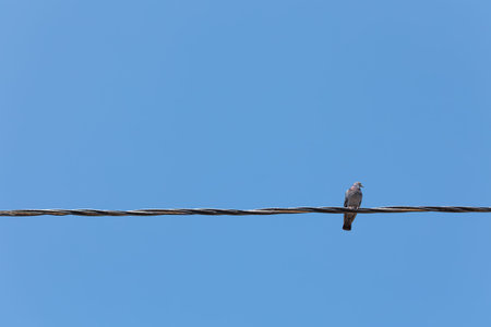 Barn Swallow (Hirundo rustica) on a Steel Cable