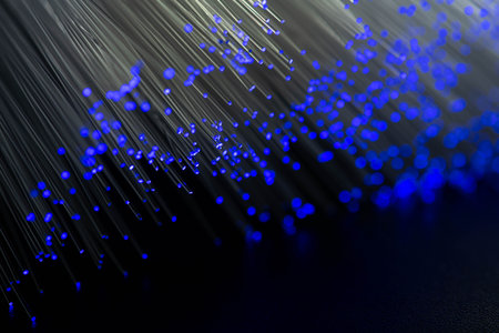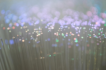 Fiber optics close-up, focal point on distant fibres