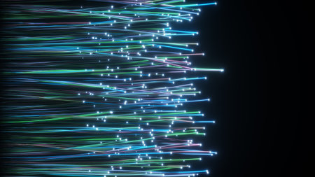 Close-up of fiber optic cables. Computer generated 3D photo rendering.
