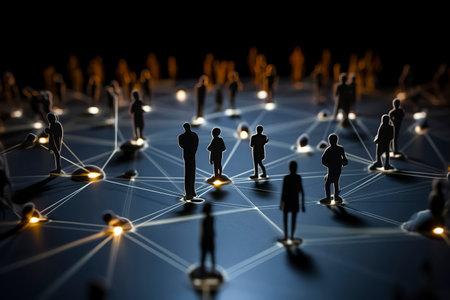 Interconnectedness of Humanity Illustrated with Diverse Miniature Figures on a Network.
