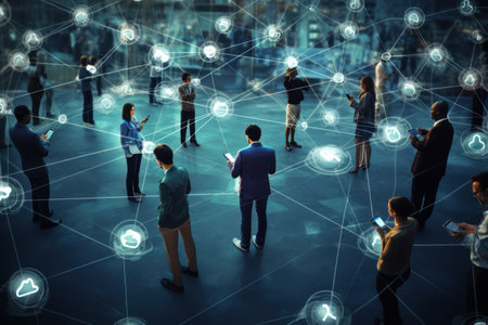 Digital connectivity abstract background a group of people using the internet network, modern communication and social interaction individuals seamlessly connected through digital networks.