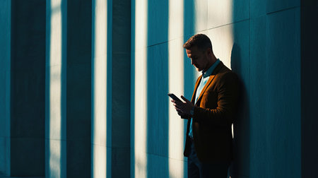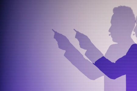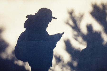Silhouette of a male working on a mobile device.