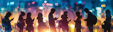 People holding smart phone and looking to it. silhouettes of people with phone addicted