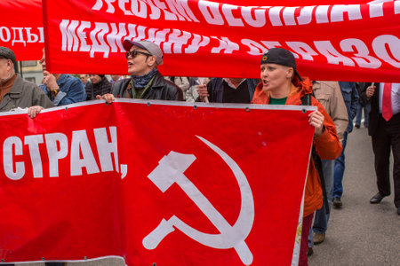MOSCOW - MAY 1: Unidentified communist party supporters take part in a rally marking the May Day, May 1, 2013 in Moscow, Russia.