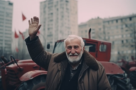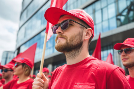 Labor day happy workers marching labour public event May 1 celebration banner demonstration worker activist crowd march solidarity union movement work employee equality equity ceremony public teamwork