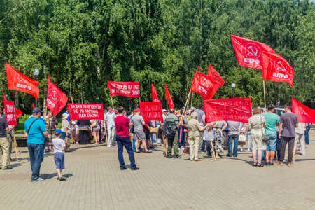 PERM, RUSSIA - JUNE 30, 2018: Communist Party of the Russian Federation protest rally in Perm, Russia