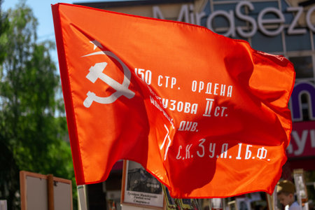 Petrozavodsk, Russia - 9 May 2022. Soviet flag at Victory Day