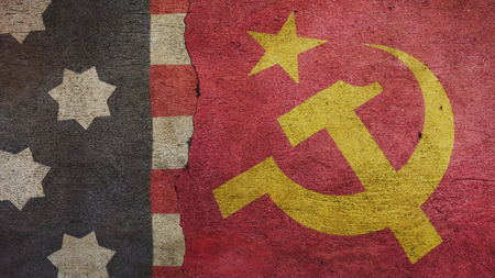 US Flag and USSR Flag on Cracked Concrete
