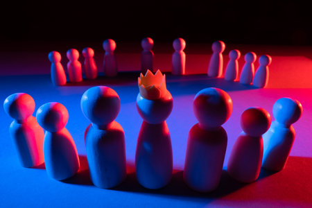 Leadership and inclusion. Colorful figurines on the surface.
