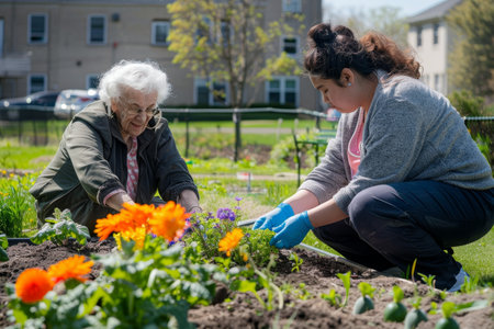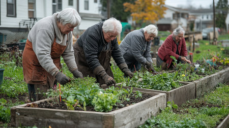 Collaborative gardening: neighbors with diverse abilities nurture a thriving garden.
