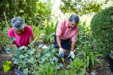 Gardening during the golden years. a senior couple gardening together in their backyard.