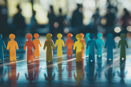 Leadership and inclusion. Colorful figurines on the surface.