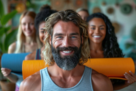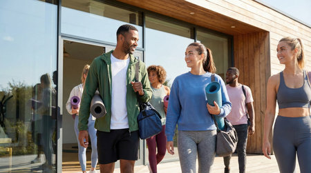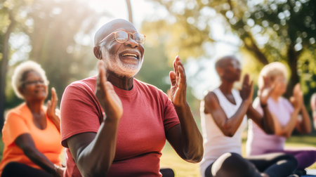 Generative AI, a group of joyful individuals enjoying themselves at a yoga class