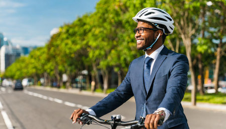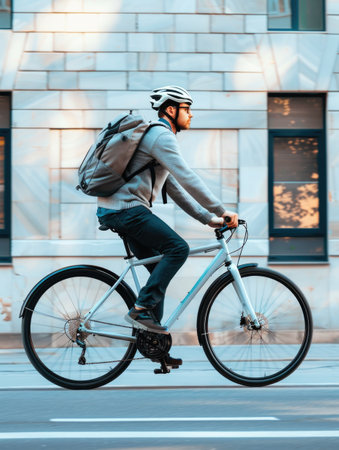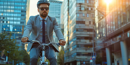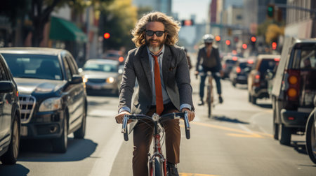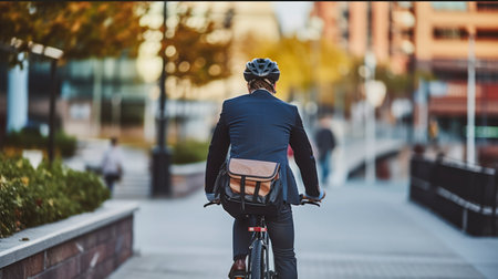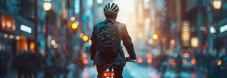 Eco-Friendly Commute - A Businessman's Journey to Work in the City on an Electric Bicycle