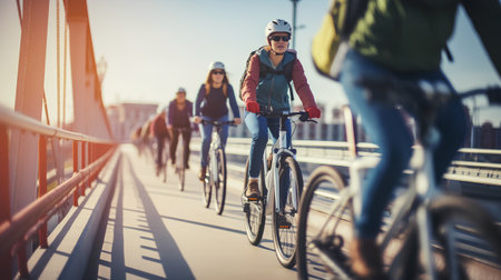 Cycling in the city. Urban cycling. Motion blurred people riding bicycles in the city