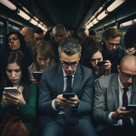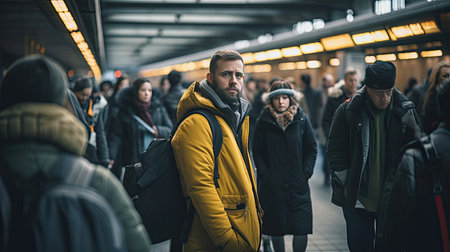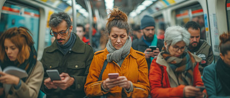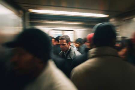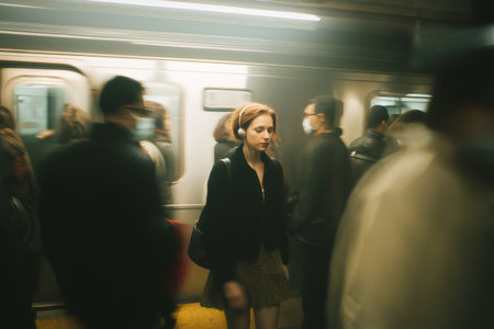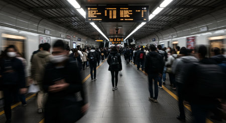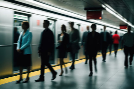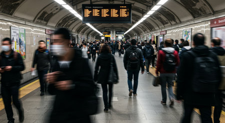 Modern commuters in a bustling subway station