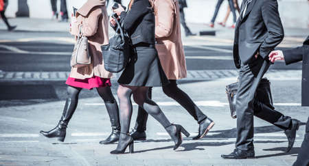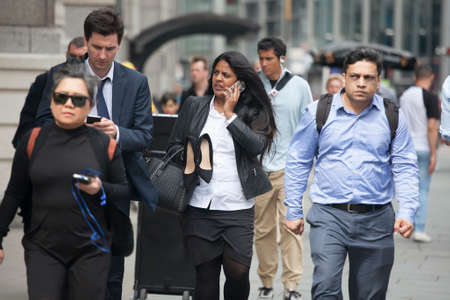London, UK - 20 April, 2019: Business people walking on the street City of London financial and office district. Modern business City of London life