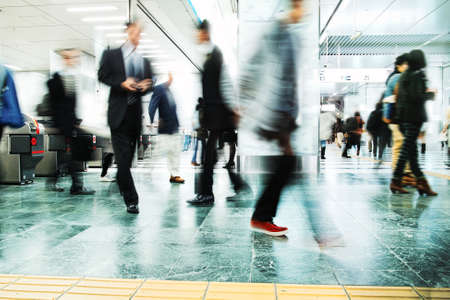 passengers in railway station, motion blur