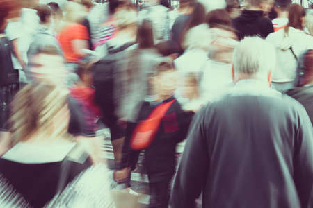 Blurred image of a crowd of people walking in the city.