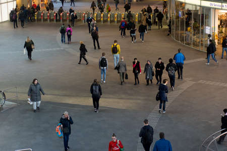 Arnhem, Netherlands - February 26, 2019: The hall of Arnhem central station with people
