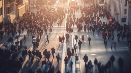 Aerial view of crowd people walks on a business street pedestrian in the city. blurred business people walking on a street. Generative Ai