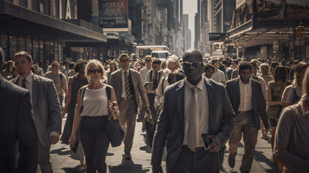 Generative AI, anonymous pedestrians on a city street