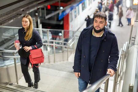 Passengers in Paris Metro, France. Paris Metro is the main public transport system in Paris.