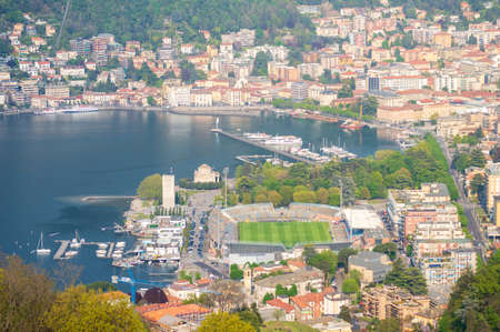 Panorama view on old city Como, Italy. Como, Italy. Fantastic aerial view on old city Como. Aerial view of the city of Como and its Cathedral.