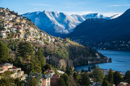 Como town on the Lake Como surrounded by mountains in the Italian region Lombardy, Italy, Europe.