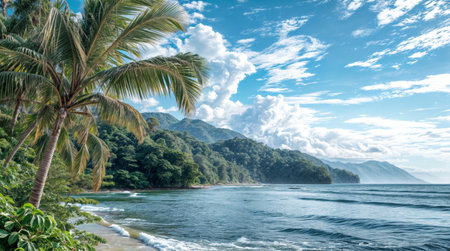 Beautiful tropical beach with palm trees and turquoise water in Costa Rica