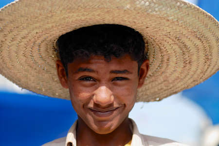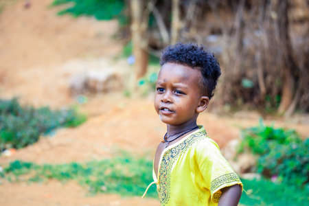 Zanzibar, Tanzania - november 16, 2019: Unknown african young happy boy on a street of Zanzibar island, Tanzania, East Africa, close up