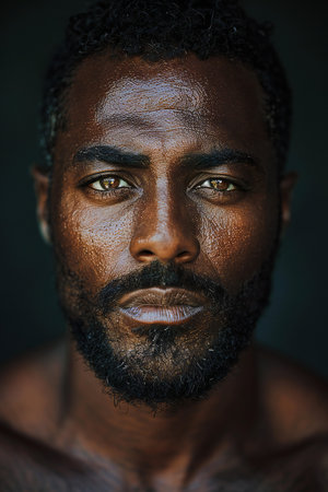 Picturesque Photo of Bahamian young male on exotic nature background. Black skinned guy portrait on tropical palms. Generate ai