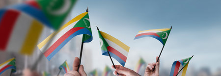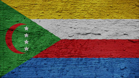 Comoros flag painted on old wood plank. Patriotic background. National flag of Comoros