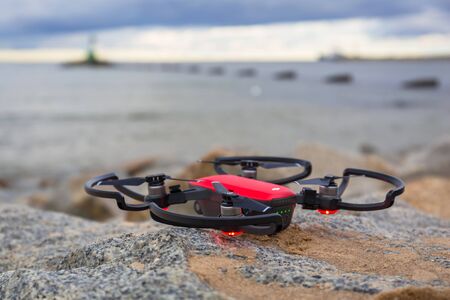 Launching a drone. Preparing the drone for flight. high quality photo