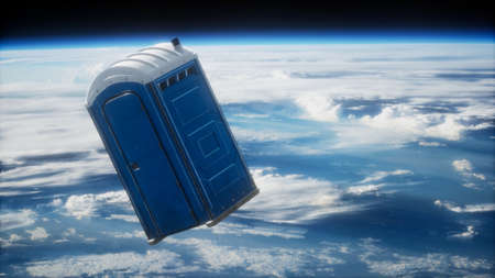 Portable street WC toilet cabin on Earth orbit.